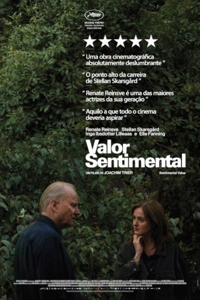 O filme Valor Sentimental, de Joachim Triers, é um forte concorrente do nosso candidato brasileiro ao Oscar de Melhor filme estrangeiro. O ator sueco Stellan Skarsgård, que estrela o filme, e Wagner Moura, têm participado constantemente de rodas de conversa sobre os tipos étnicos e seus papeis em Hollywood. Skarrsgárd, versátil, já fez de tudo, até mesmo musicais como Mamma Mia! Here We Go Again (2018), em que faz o namorado de uma das amigas de Donna Sheridan (Meryl Streep), o que faz todo sentido, afinal o musical foi inspirado na música do grupo ABBA, um patrimônio da Suécia, ao lado do noir nórdico, gênero literário de romance policial que popularizou nomes como Stieg Larsson e Henning Mankell. No início da carreira, relembra, sempre acabava no pepal do vilão, por vezes russo, por conta do sotaque, hoje bastante atenuado. Pois bem, em Valor Sentimental ele é o pai, o contraditório e rígido cineasta Gustv Borg, nessa história dirigida por um norueguês, Joachim Trier, mas que evoca sobremaneira os filmes de outro sueco, Bergman.